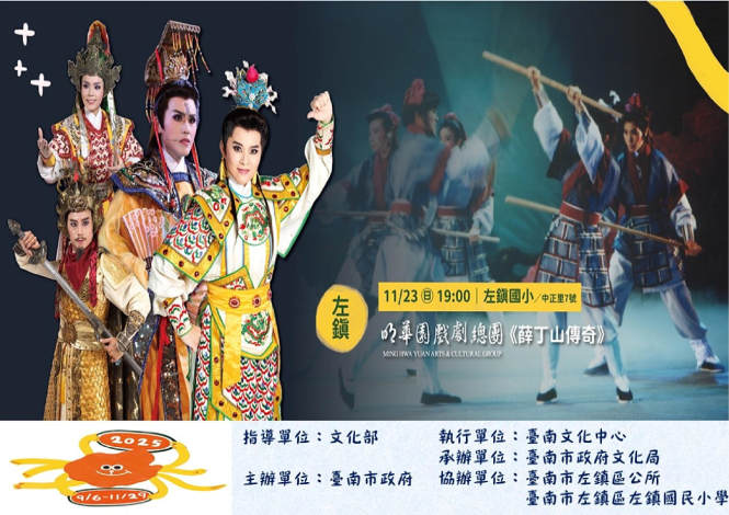 臺南市政府文化局策劃「2025藝術進區」左鎮區場次,訂於114年11月23日(日)於本區左鎮國小演出。